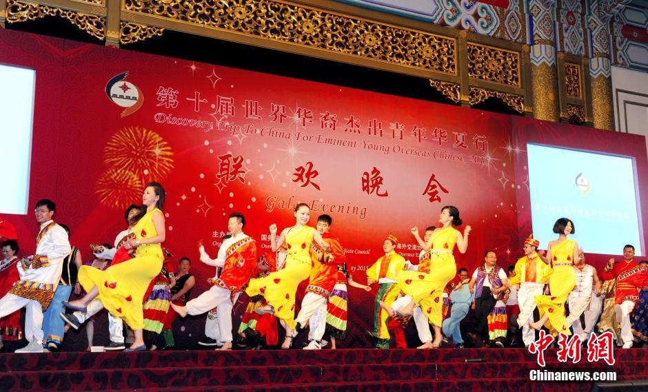 5月29日晚,“第十届世界华裔杰出青年华夏行”联欢晚会在京举行。“第十届世界华裔杰出青年华夏行”活动由中国国务院侨办、中国海外交流协会主办。本届“华夏行”通过举办华裔杰出青年论坛,组织有关中国历史、文化、外交等专题演讲,开展海内外各界青年互动交流,赴北京、天津、上海、江苏、浙江、河南、江西、云南等地参观考察。图为民族舞蹈加诗朗诵(云南线代表)。中新社发 张勤 摄