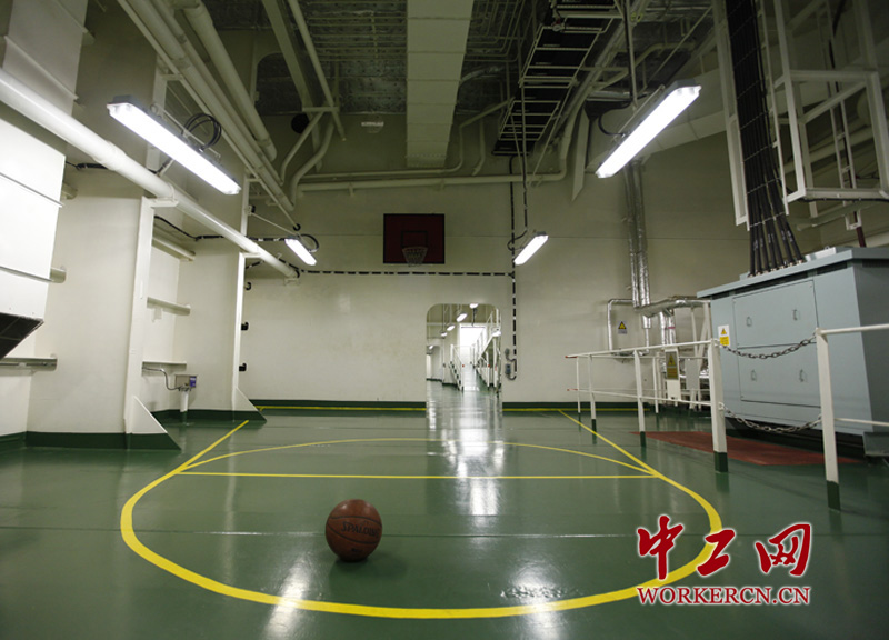 船员们利用空间,建了半个篮球场。中工网记者韩靖摄