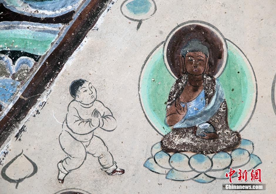 图为童子礼佛-莫高窟第79窟(盛唐)。 敦煌研究院供图