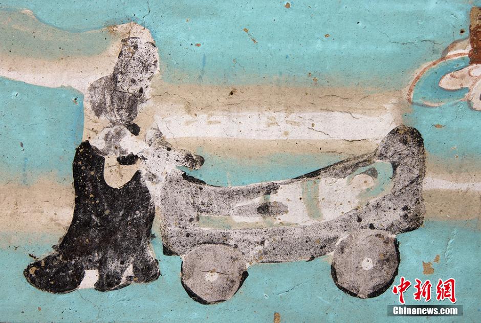 图为父母恩重经变中的儿童栏车-莫高窟第156窟(晚唐)。 孙志军 摄