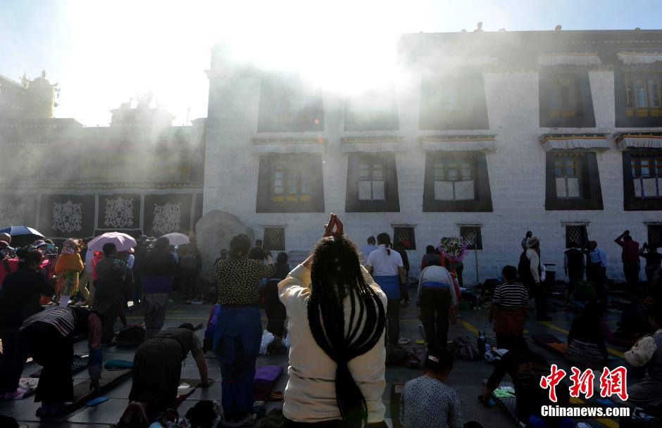 6月2日,信教民众围绕大昭寺磕长头。 李林 摄