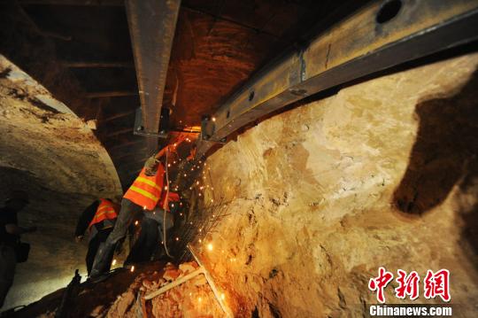 6月2日,宝(宝鸡)兰(兰州)客专兰山隧道内中铁隧道集团二处的施工人员正在进行紧张的掘进。宝兰客专兰山隧道地处黄土高原西北部,位于黄土高原梁峁、沟壑纵横区,不良地质主要为黄土陷穴、湿性黄土、松软土及膨胀土,湿陷土,砂(黏)质黄土属松软土等,施工风险大,技术要求高。针对这些难题,中铁隧道集团二处施工人员着手研究,进行了超前长管棚、自进式锚杆注浆、改性水玻璃溶液注浆等工程试验,积极探索,采取了一系列的措施,成功解决了黄土高原多项地质难题下正常施工的方法。宝(宝鸡)兰(兰州)客专是国家中长期铁路网规划中徐兰客运专线的西段,也是国家铁路“四纵四横”客运专线网的重要组成部分。宝兰客运专线设计时速250公里/小时,建成后宝鸡到兰州列车运行时间将缩短到2小时。杨艳敏 摄