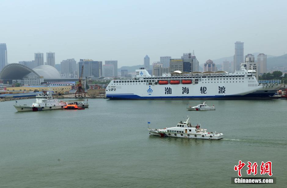 图为海事船艇对救生筏上的逃生旅客施救。 李敏 摄