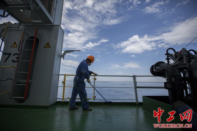 凭着一股巧劲和韧劲,卢丰18岁被招工进入上远任水手,而立之年成为了中日航线的“绿色快航”水手长。在船上,“有事儿找水头”已经成了水手们的一句口头禅。中工网记者韩靖摄