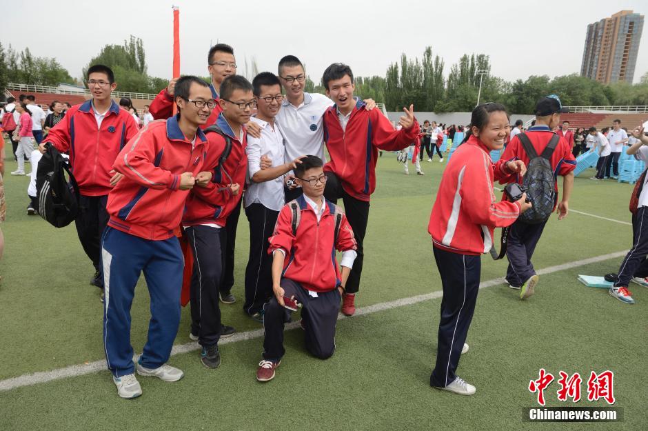 6月3日,毕业典礼现场,学生拍照留念。当日已经离高考时间不到一周,呼和浩特市第一中学老师、高三学生与家长共聚毕业典礼,感恩今天,为高考加油。 中新社发 刘文华 摄