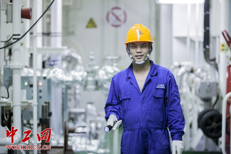 袁雷明,38岁,上海人。中远西班牙轮大管轮,主要负责机舱内设备的维修和保养,船上习惯叫大管轮为“二轨”。中工网记者韩靖摄