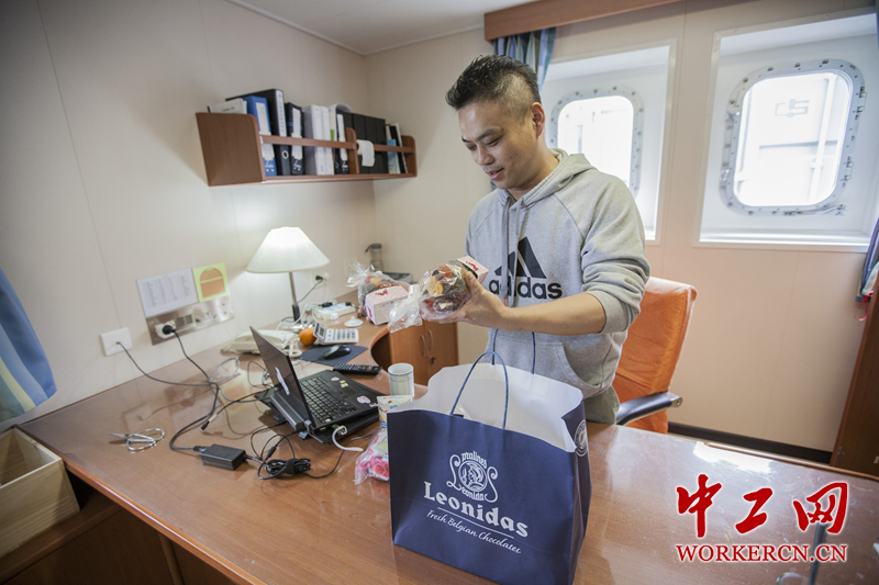 这一次航行到欧洲,袁雷明给女儿买了很多礼物,他只能用这样的方式来“讨好”女儿。中工网记者韩靖摄