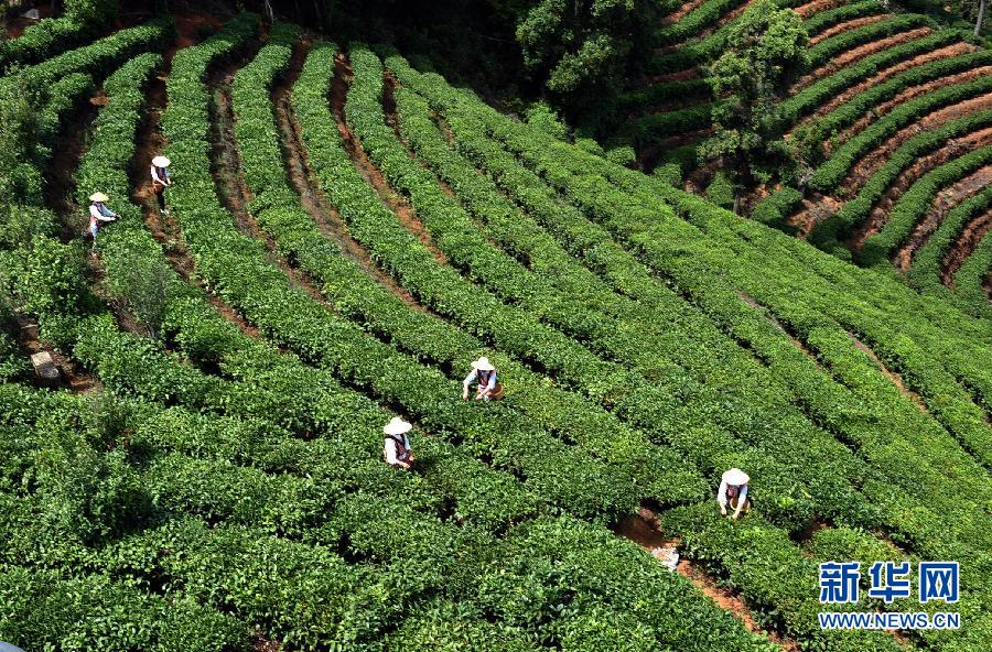 6月8日,一些采茶女在生态茶园中采摘夏茶。新华社记者陈海宁摄
