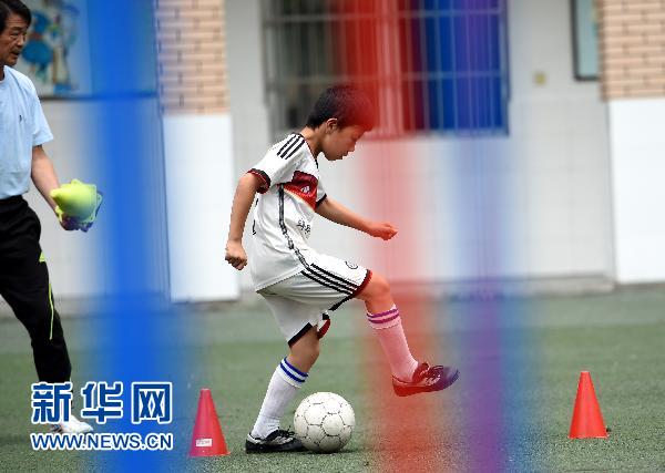 6月9日,蚌埠市回民小学的足球队员们在进行训练。安徽蚌埠市回民小学是一所足球特色学校。近年来,为更好地发展校园足球,该校把足球引入课堂,外聘富有经验的足球教练员,开办足球特色班,提高孩子们的足球兴趣和技能。在专业教师指导下,校园足球队员们坚持训练,在一次次的比赛历练中不断成长,成为全国少年足球比赛中的一支强队,在全国和安徽省少年足球比赛中多次获得佳绩。新华社记者刘军喜摄