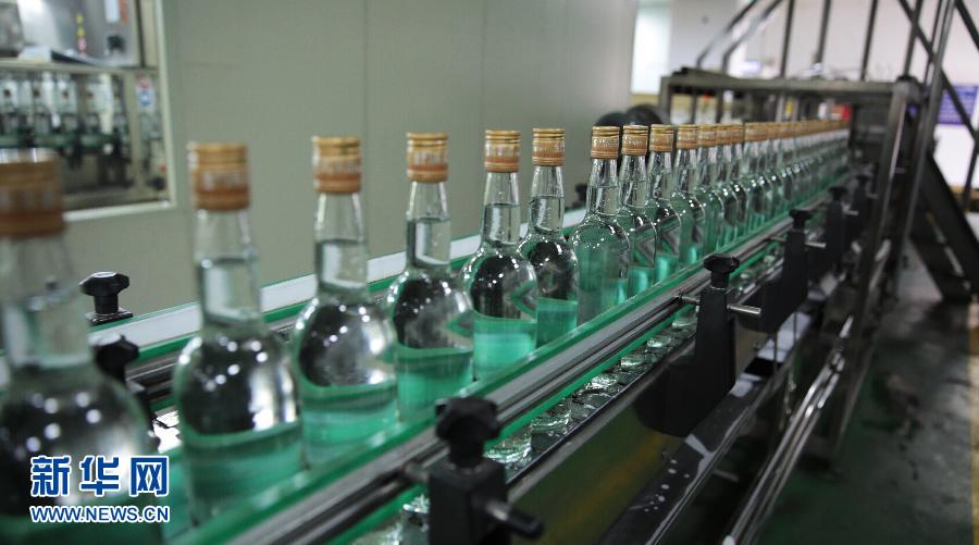 金门酒厂包装生产线上的一瓶瓶高粱酒(6月8日摄)。金门酒厂于1952年建立,其承袭传统古法工艺酿造的高粱酒深受海峡两岸民众欢迎,自2004年正式进入大陆市场以来,业绩年年增长。2014年金门酒厂产量为2840万升,销售额达到新台币133亿(约合人民币26.5亿)。新华社记者才扬摄