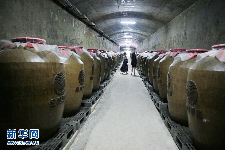 金门酒厂窖藏的高粱酒(6月8日摄)。金门酒厂于1952年建立,其承袭传统古法工艺酿造的高粱酒深受海峡两岸民众欢迎,自2004年正式进入大陆市场以来,业绩年年增长。2014年金门酒厂产量为2840万升,销售额达到新台币133亿(约合人民币26.5亿)。新华社记者才扬摄