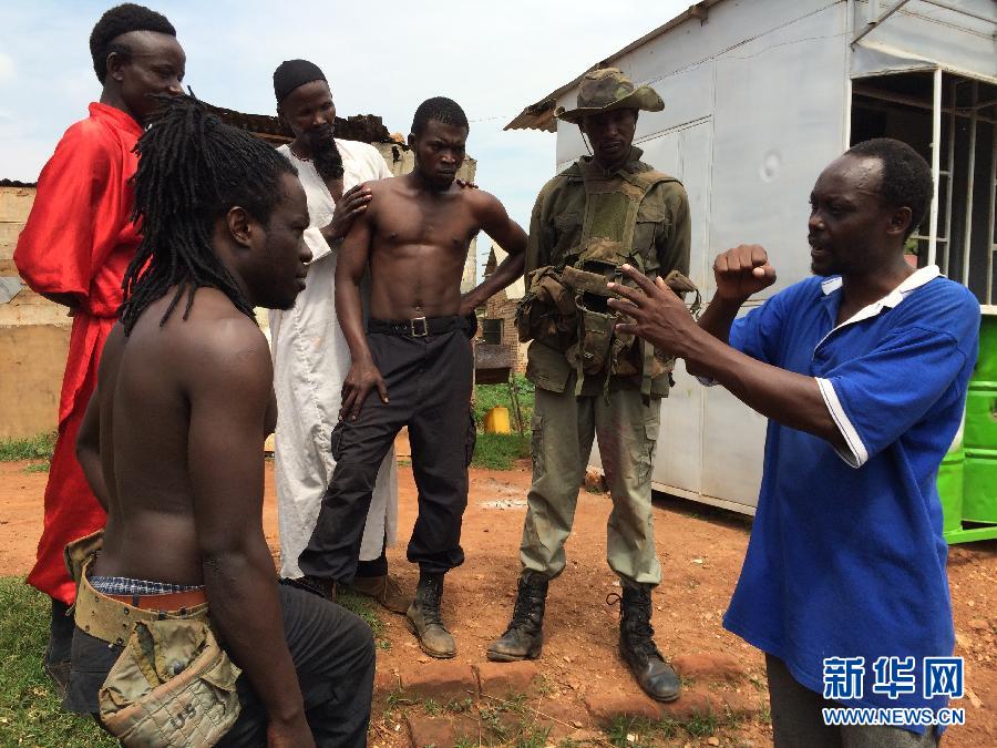 在乌干达首都坎帕拉市郊的“瓦卡里加”贫民窟,导演伊萨克·戈弗雷正在指导当地演员拍戏。几名土生土长的乌干达演员怀揣梦想,勤练功夫,决心打造乌干达的“瓦卡莱坞”。新华社记者袁卿摄