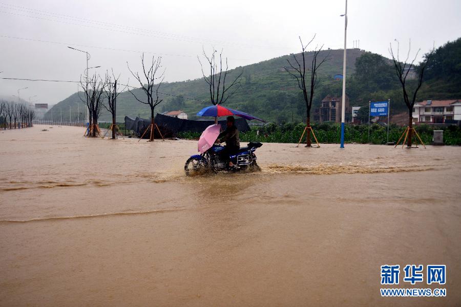 6月10日,在贵州省遵义市余庆县龙溪镇田坝村,村民骑摩托车涉水前行。当日,贵州省遵义市余庆县遭受暴雨袭击并引发洪涝灾害,导致部分地区道路受淹、房屋进水,多名群众被洪水围困,农作物大面积受灾。目前,当地已启动应急预案,组织相关部门深入各乡镇村进行抢险救灾工作。新华社发(贺春雨 摄)