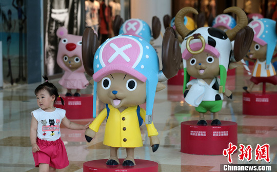 6月11日,二十多个日本超人气动漫《海贼王》中的主角“乔巴”亮相南京,不同色彩外加不同外形,萌萌哒的模样吸引了众多市民的目光。中新社发 泱波 摄
