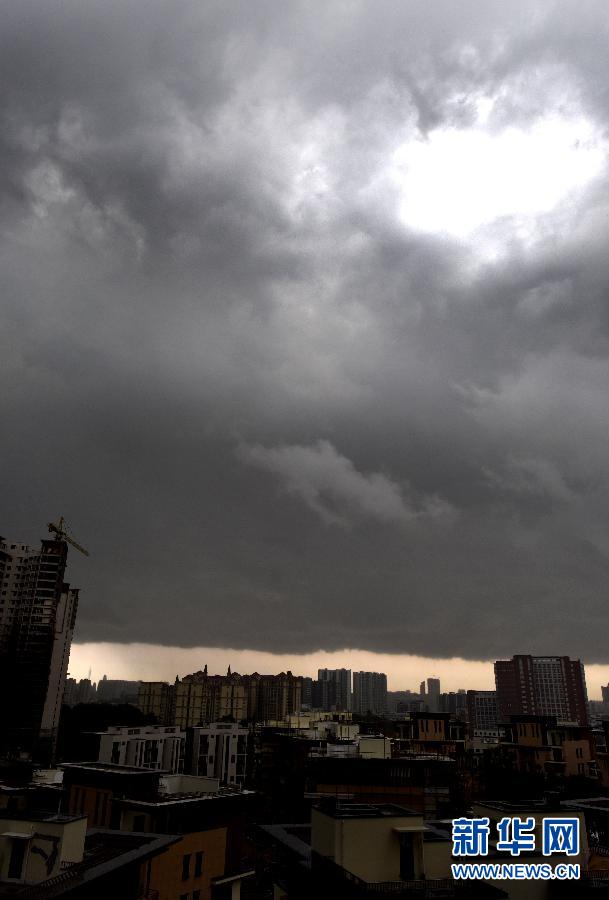 6月11日17时左右,暴雨前的广州。当日,广州遭遇强对流天气,暴雨突袭,一时间白昼如夜。 新华社记者卢汉欣摄