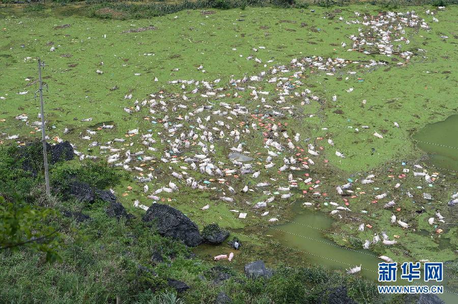 图为洪水过后,岸上堆积着大量猪尸体。新华社记者黄孝邦 摄 图片来源:新华网