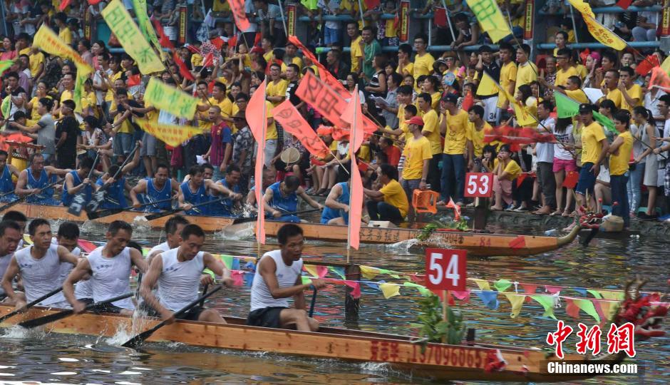 6月16日,农历五月初一,三年一度的广东高要金利镇龙舟大赛开赛,香港、澳门、广东三水、南海等地区的“龙舟”也应邀参赛,现场吸引10万人助威百龙竞渡。金利龙舟在历史上颇负盛名,素有“广州逛花市、金利看龙舟”美谈。据了解,今年参赛龙舟达115艘,参赛运动员达6000余名。本次龙舟大赛是广(州)佛(山)肇(庆)三地“2015年爱我珠江亲水节”系列活动之一。中新社发 黄耀辉 摄