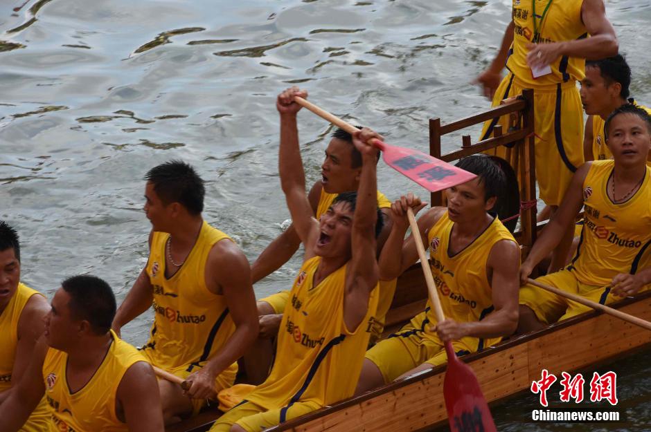 6月16日,农历五月初一,三年一度的广东高要金利镇龙舟大赛开赛,香港、澳门、广东三水、南海等地区的“龙舟”也应邀参赛,现场吸引10万人助威百龙竞渡。金利龙舟在历史上颇负盛名,素有“广州逛花市、金利看龙舟”美谈。据了解,今年参赛龙舟达115艘,参赛运动员达6000余名。本次龙舟大赛是广(州)佛(山)肇(庆)三地“2015年爱我珠江亲水节”系列活动之一。中新社发 黄耀辉 摄