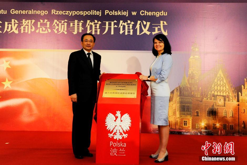 6月18日,波兰驻成都总领事馆在成都举行开馆仪式。这是波兰在华开设的第4家总领馆。波兰外交部副部长卡茨帕尔赤克赴蓉出席了开馆仪式。图为波兰外交部副部长卡茨帕尔赤克与四川省副省长王宁为总领事馆揭牌。安源 摄