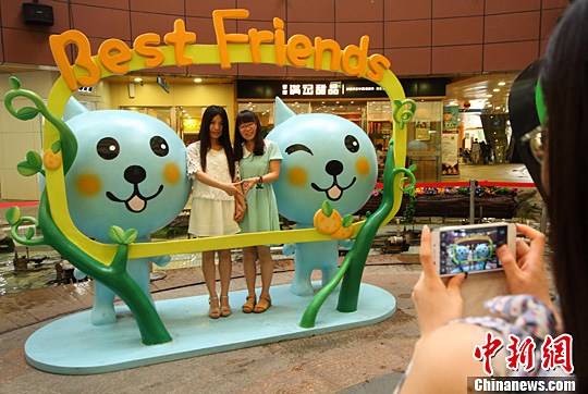 两位好朋友在模型中摆爱心。李珂 摄
