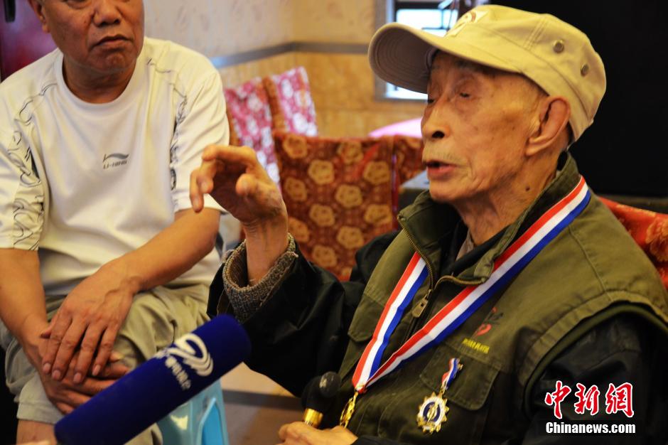 从6月18日开始,由四川志愿者和画家联合组成的关爱抗战老兵组织来到泸州叙永,开始为这一地区的老兵画像。画家们表示,希望通过给各地的抗战老兵画像,可以以此种特殊的形式将抗战精神留住。而这些画像将作为纪念世界反法西斯战争胜利70周年的礼物,赠予建川博物馆和一些地方博物馆用于永久纪念收藏。图为102岁老兵讲述台儿庄战役经历。中新社发 周亚强 摄
