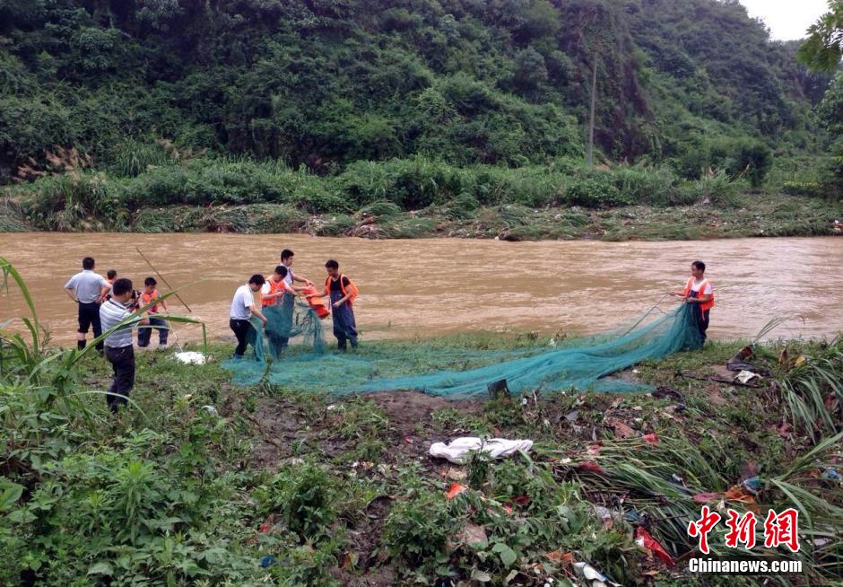 6月19日上午,江西萍乡市一公交车坠河事件已致4人失踪,目前搜救人员正沿着河道搜救。6月18日下午,江西省萍乡市一辆公交车行驶在319国道三湾路段时发生交通事故,侧翻河中。当天下午6时30分,坠河客车被吊起,但车上3名乘客和1名售票员下落不明。尹佳 摄