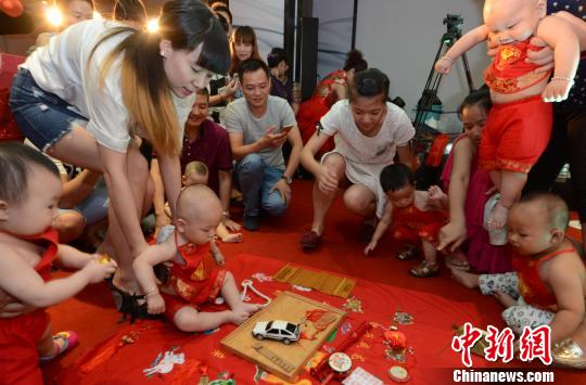 来自福州及闽侯的11个家庭的周岁宝宝来参加“印象闽都韵,浓浓端午情”“抓周”仪式。 刘可耕 摄