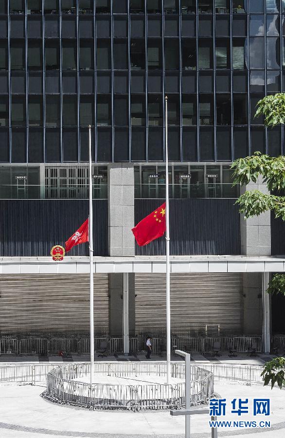 6月19日,乔石同志遗体在北京火化。为悼念乔石同志,香港特区政府总部下半旗志哀。 新华社记者 何靖嘉 摄