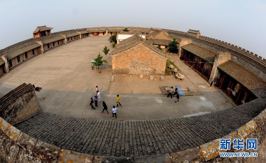 陕西省大荔县朝邑镇原为朝邑县城旧址,地处黄河、洛河、渭河金三角地带,东接黄河滩万顷良田,西连八百里秦川。镇内景观资源丰富,建筑独特,保存完整,目前已列入保护范围内的历史文物古迹多达7处,其中的“唐塔、宋祠、清仓”最为著名。古镇上最引人关注的是著名的国家级重点文物保护单位“丰图义仓”,因慈禧太后批为“天下第一仓”而驰名。丰图义仓历经一百多年风风雨雨仍然保存完好,并一直储藏着粮食,它主体建筑是一座以砖结构为主的窑群式仓城,外观酷似一座古城,环内城一周排列窑洞58面,每窑可储粮90吨,共可储粮5200吨,是集储存粮食、军事要塞、观光圣地为一体的绝佳境地。新华社记者 陶明 摄