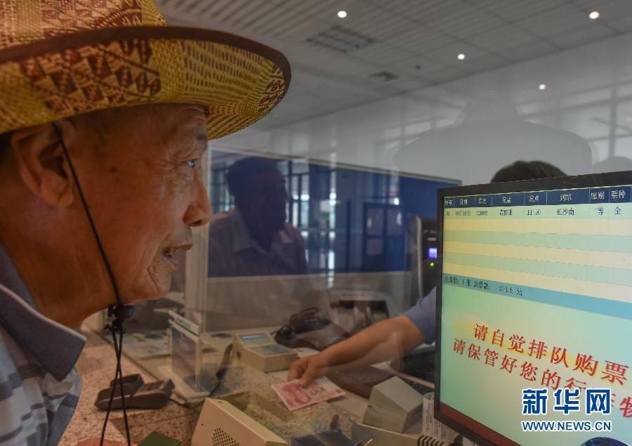 6月17日,一名旅客在贵阳北站购买18日的沪昆高铁车票。据中国铁路总公司消息,沪昆高铁贵阳至新晃段将于6月18日正式开通运营。目前各项准备工作已经就绪,18日的首趟高铁车票已经开始售卖。据悉,沪昆高铁贵阳至新晃段全长286公里,开通初期运营时速300公里。该段高铁开通后,贵州省将全面接入全国高铁网络系统,通往华北、华东、华南方向将均有动车通达。新华社记者 刘续 摄