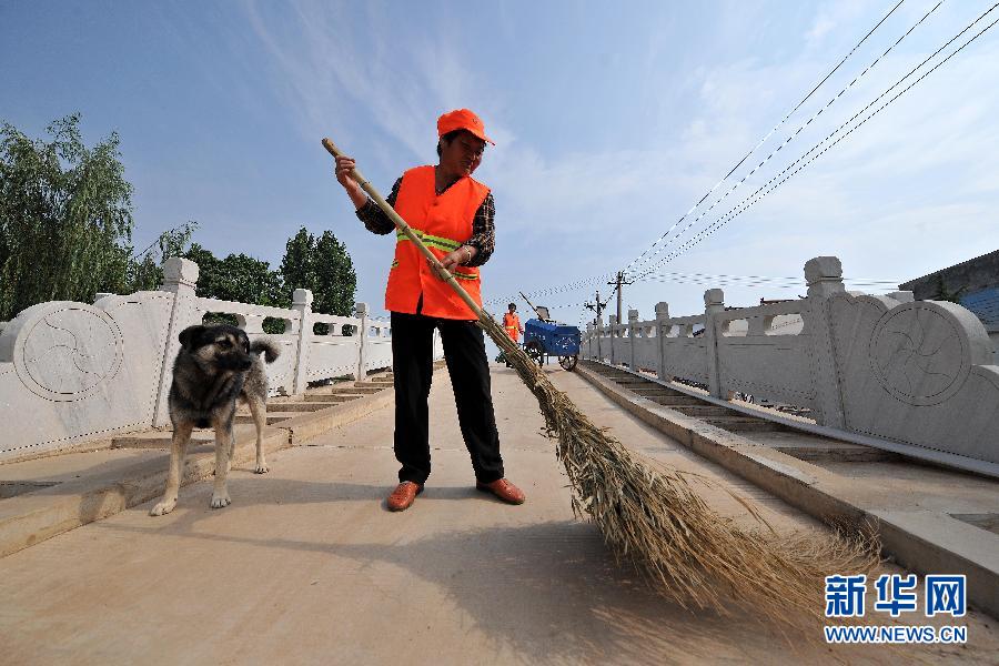 6月16日,在垣曲县皋落乡岭回村,乡村环卫工常学辉在村里扫地。为改善农村人居环境,解决农村生活垃圾的堆积问题,近年来,山西省垣曲县大力开展农村环境面貌综合整治工作,探索出“户收集、村清运、乡镇集中填埋”的垃圾治理之路。过去,垣曲县农村群众处理垃圾的方式大多是随意堆放或直接焚烧。自2013年起,当地政府建立了“机构、队伍、场所、工具、报酬、奖惩、记录、资金”的“八有”机制,在全县188个行政村聘请了500多位村民做乡村环卫工,村内放置了垃圾桶,每个村庄都建立了垃圾池。乡镇配备了垃圾清运车,统一将各村垃圾运往乡镇的垃圾填埋场处理。同时,对闲置用地实行绿化措施,使农村环境逐步实现“变脸”。如今,垣曲县垃圾围村的现象已“销声匿迹”,农村环境面貌得到较大改善。据了解,垣曲县还制定了《农村清洁工程长效管理办法》,今年将采取县干部包乡镇,乡镇干部包村,按照重点推进、分步实施的办法,继续实施农村环境连片整治,努力打造环境整洁、舒适宜居的美丽乡村。新华社记者 詹彦 摄
