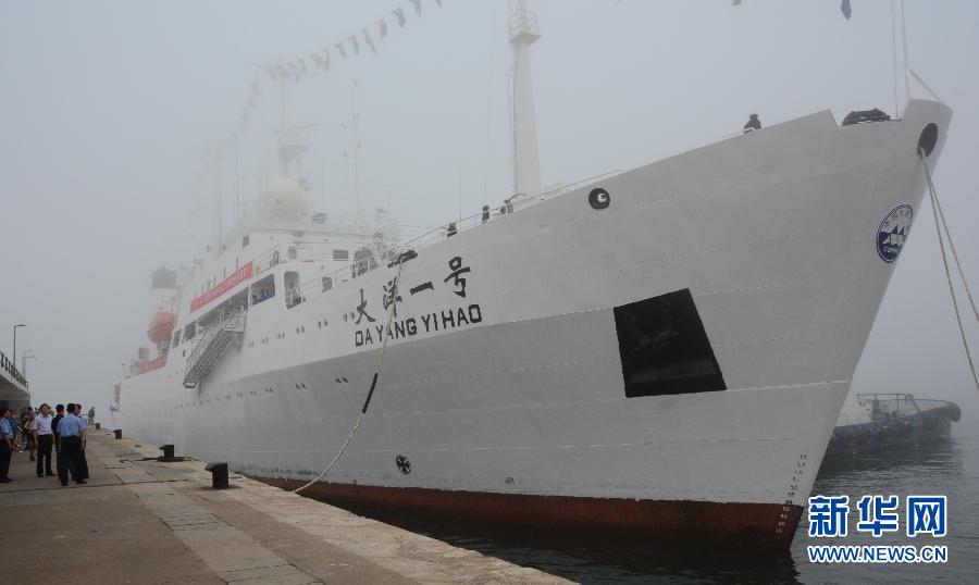 6月18日,“大洋一号”科考船停靠在青岛母港码头。当日,我国远洋科考功勋船“大洋一号”圆满完成中国大洋第34航次返回青岛,共历时215天,航程28125海里。在第34航次中,我国科学家在西南印度洋中国多金属硫化物勘探合同区开展多金属硫化物资源勘探,兼顾环境基线和生物多样性等调查,并在中印度洋海盆首次发现大面积富稀土沉积物。新华社记者张旭东摄
