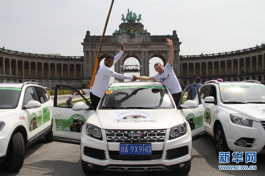 6月17日,熊猫粉丝自驾团抵达比利时布鲁塞尔。两名比利时熊猫粉丝当日在布鲁塞尔接过中国四川旅游局颁发的“行南丝绸之路·游大熊猫家乡”旅游证书,正式加入“欧洲熊猫粉丝四川探亲之旅”。探亲之旅召集来自英国、法国、比利时等6个欧洲国家的12名熊猫粉丝与熊猫、南丝绸之路领域的专家和文化名人一起,组成国际自驾团于本月12日从西班牙、英国同时出发,驾驶成都制造的“野马”汽车穿越欧亚14国,最终抵达中国四川,并深入体验四川得天独厚的旅游魅力。新华社记者吴昌荣摄