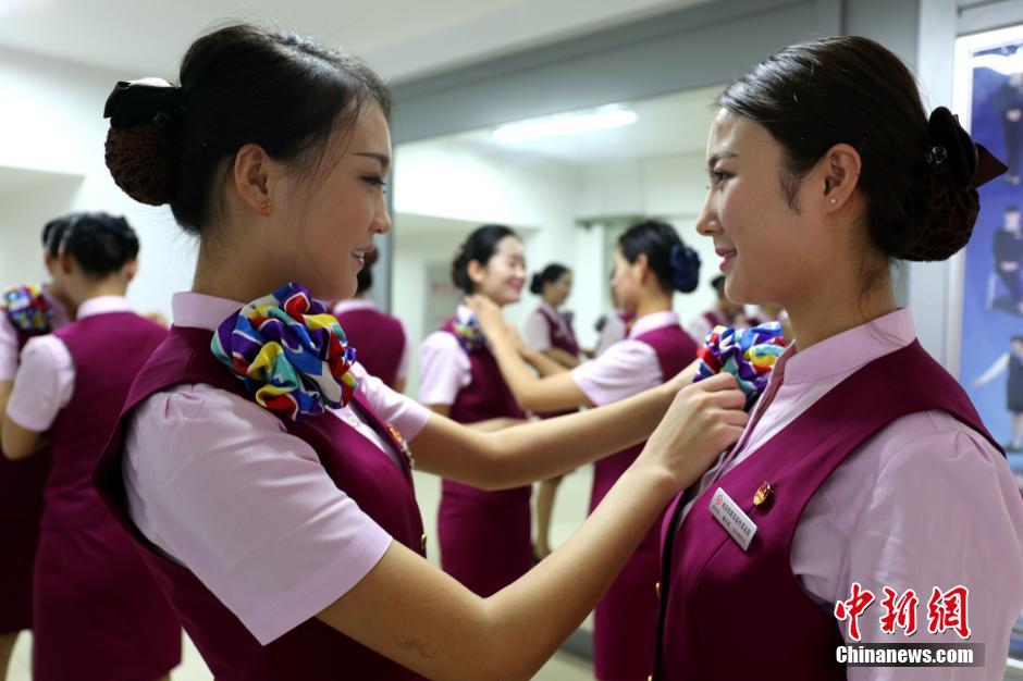 6月24日下午,合福高铁即将开通之际,南昌铁路局福州客运段担当合福高铁乘务工作的190名高姐穿上全新的制服,亮相福州火车站,吸引了过往旅客的目光。高姐们的新制服全部量身定做,枣红色的马甲、裙子和粉色衬衣配上漂亮的领花更显高姐们青春丽质。雍万俊 摄