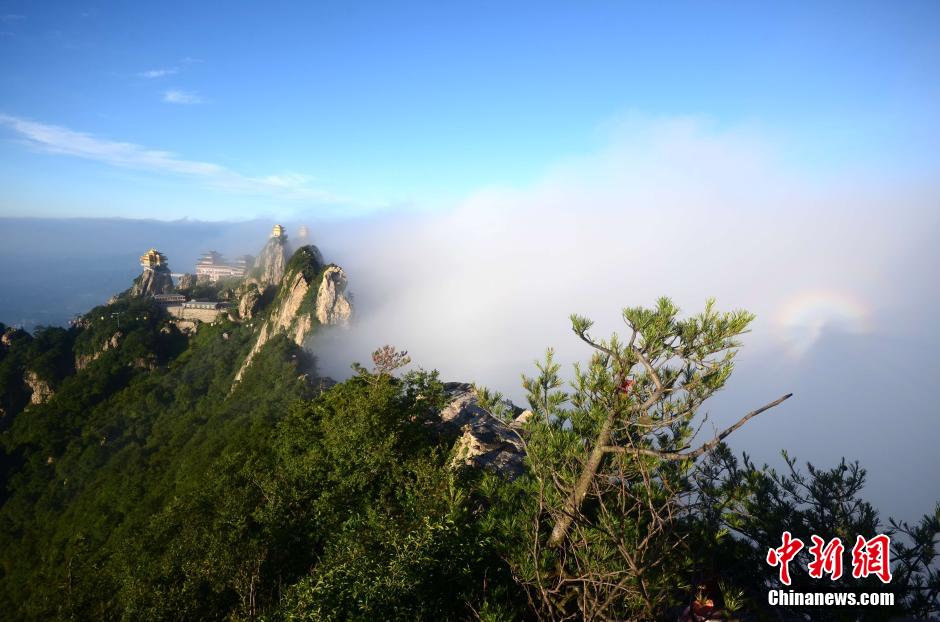 6月25日,河南栾川老君山,雨后初晴伏牛山主峰老君山金顶现云海奇观,千峰竞秀,万壑藏云,云海霞光映金,风起云涌,使人有进入神话传说的仙境之感。洛阳老君山(本名景室山),道教主流全真派圣地,位于河南省洛阳市栾川县城东南三公里处,老君山是秦岭余脉八百里伏牛山的主峰,海拔高达2200余米。被道教尊称为太上老君的李耳(即老子)曾在此山修炼,唐太宗因此将景室山改名为老君山。王中举 摄