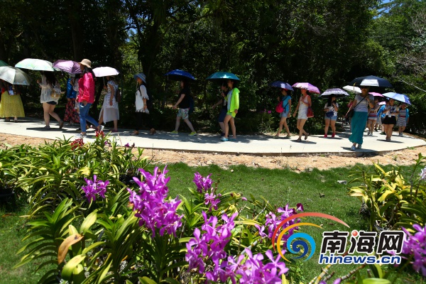 网媒记者、编辑们在兴隆热带花园兰花区参观(南海网记者高鹏摄)