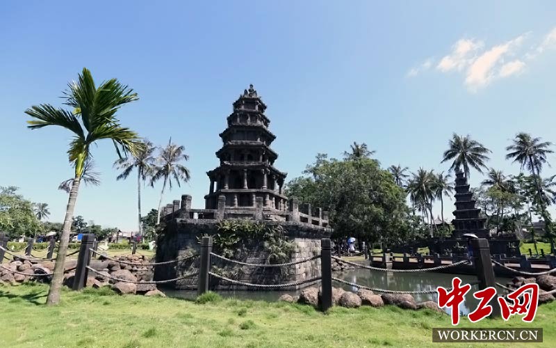 美榔姐妹塔整体造型协调节器美观,又在统一中富有变化,其刻工精巧细致,实为琼州石塔的艺术珍品。 (中工网记者 毛邓摄)