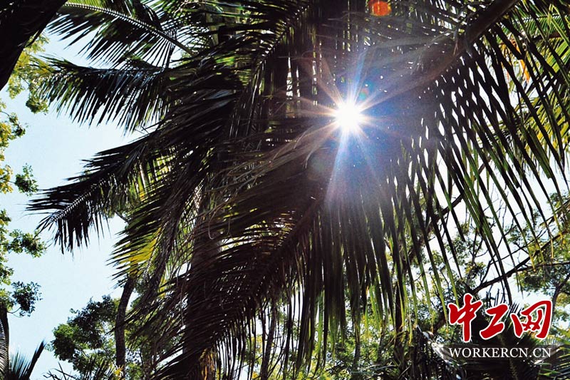 经过一路郁郁葱葱的林荫小径,一座有七百多年历史,由火山岩砌成的古村落——澄迈美榔村展现在眼前。 (中工网记者 毛邓摄)