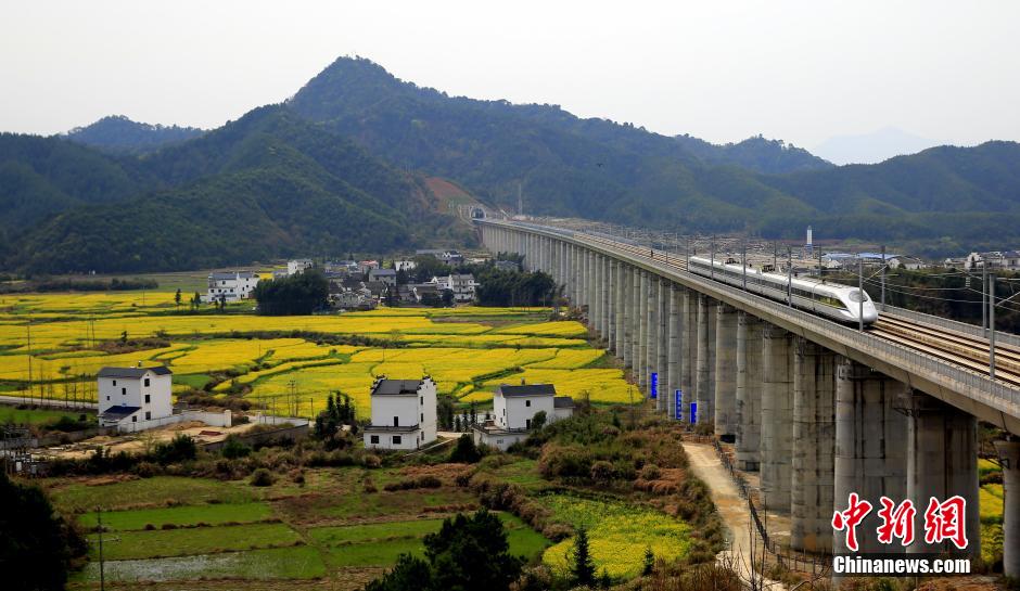 6月28日,合福高铁开通运行。合福高铁自合肥南站引出,经安徽巢湖、铜陵、绩溪、黄山,江西婺源、上饶,福建武夷山、南平,至福州站,线路全长806公里;因经过武夷山、黄山、婺源等风景名胜区,被赞为“最美高铁”。姚云龙 摄
