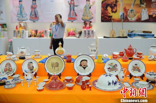 草原文化与创意产业展现场的蒙元风格瓷器展示 刘文华 摄
