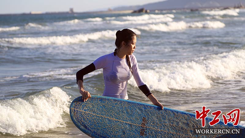 6月26日下午,“一带一路看海南”全国重点网络媒体海南行,媒体采访团来到日月湾体验冲浪,网媒记者和编辑们亲自下海体验了“世界冲浪胜地”的魅力。亲身感受日月湾独特的魅力。 (中工网记者 毛邓摄)