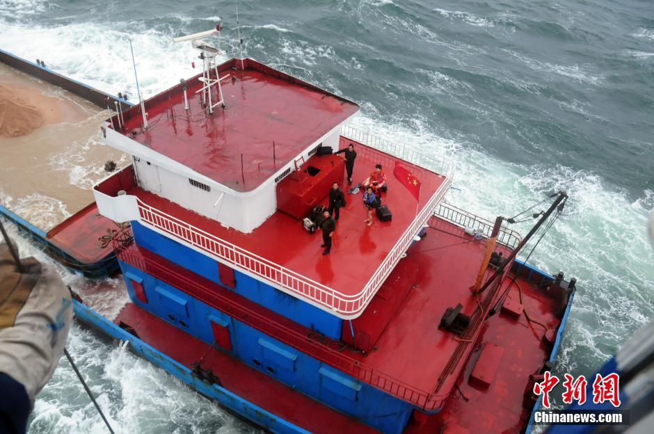 图为救助直升机抵达“姜顺299”船舶上空。栗军辉 摄