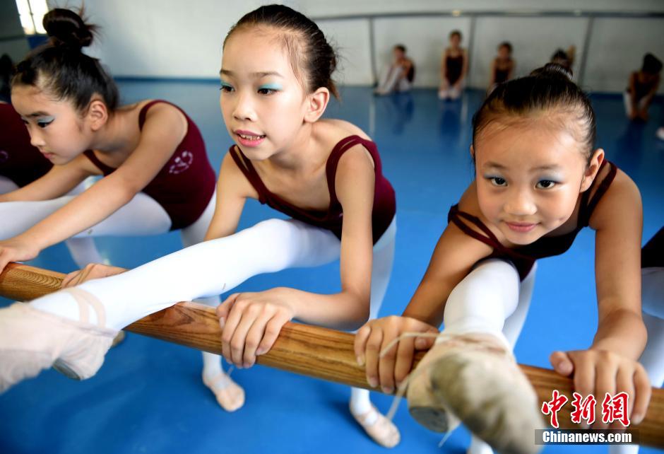 6月29日,在安徽亳州市谯城区文化馆的训练房里,孩子们在老师指导下练习舞蹈基本功。暑假来临,安徽省亳州市许多孩子利用假期时间参加舞蹈培训,增强自身综合素质,丰富假期生活。中新社发 刘勤利 摄