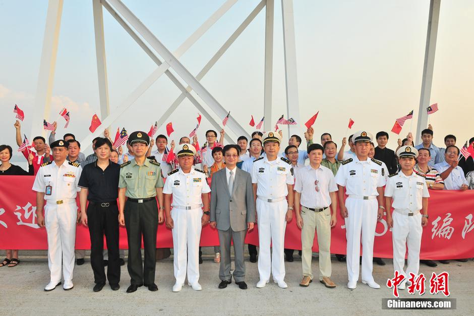 6月29日上午8时,从地中海途经亚丁湾,经过18昼夜的连续航行,圆满结束对土耳其、克罗地亚、意大利欧亚3国友好访问的海军第十九批护航编队抵达马来西亚巴生港技术停靠。马海军代表和中国驻马来西亚黄惠康大使率中资机构、华人华侨代表等百余人到码头欢迎。此次停靠主要是进行燃油和生活物资补给。编队将举行舰艇开放日活动和甲板招待会。中新社发 熊利兵 摄