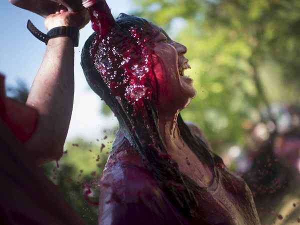 6月29日,超过9千人参加了西班牙拉里奥哈自治区阿罗举行的“葡萄酒大战”,消耗约13万升葡萄酒。