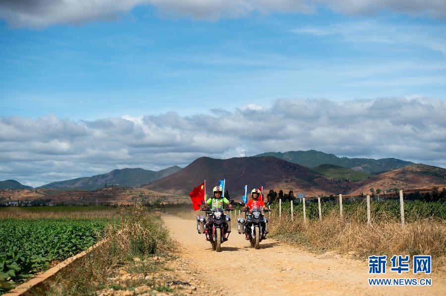 6月29日,采访报道团车队的车手骑着摩托车沿着云南驿机场主跑道的遗迹骑行。当日,新华社记者追寻“中国抗战生命线”重走滇缅公路报道团队进入位于大理祥云县的古镇云南驿,探访抗日战争时期重要的战时机场遗迹。滇缅公路从云南驿通过,在抗日战争期间,当地建有两个军用飞机场,是保卫滇缅公路及滇西大反攻的战略要地。新华社记者 刘潺 摄