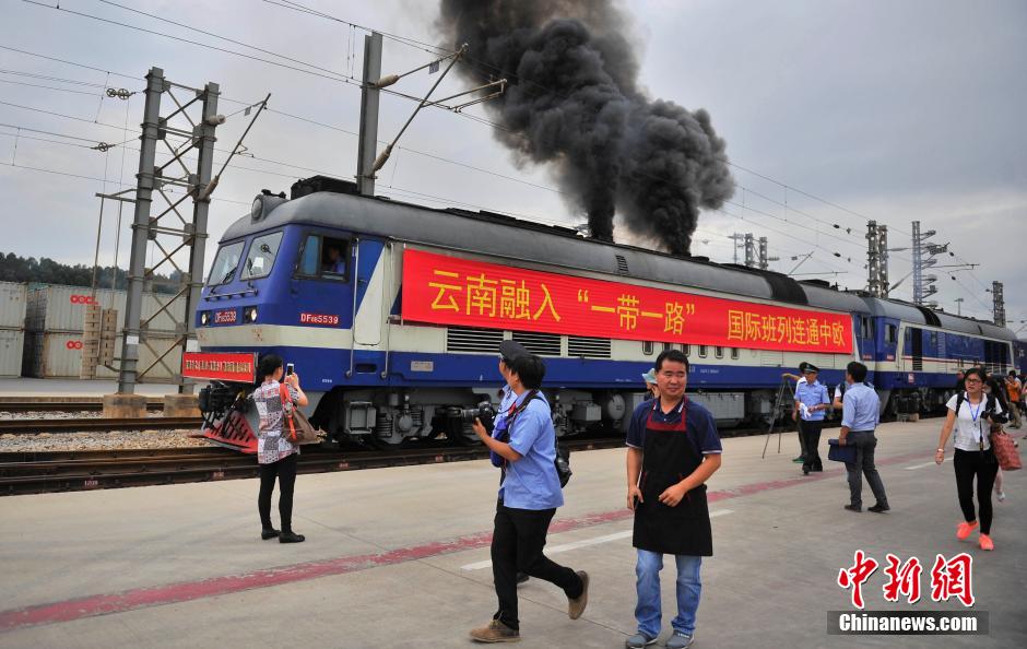7月1日,云南首趟中欧(昆明至荷兰鹿特丹)集装箱国际货运班列,满载2050吨咖啡豆有昆明王家营西火车发出,15天后将抵达荷兰第二大城市鹿特丹,标志着从云南直通欧洲的铁路运输模式正式开启。 中新社发 刘冉阳 摄