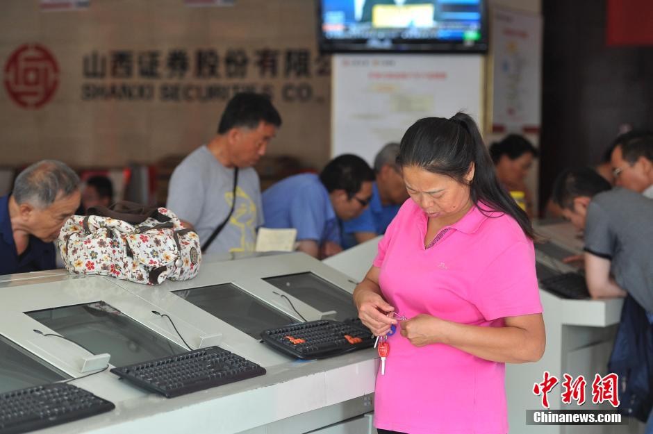 7月2日,山西太原一证券交易所,一名百无聊赖的股民剪指甲打发逆市时光。中新社发 韦亮 摄