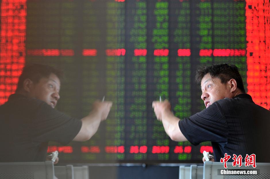 7月2日,山西太原一证券交易所,股民面对跌跌不休的股指情绪激动。中新社发 韦亮 摄