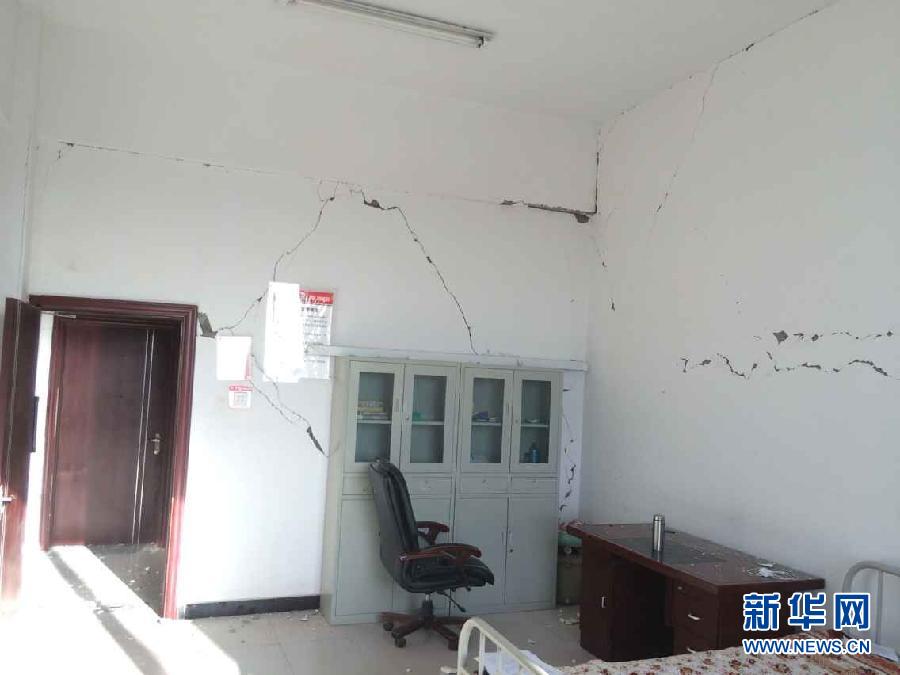 7月3日,新疆皮山县消防中队执勤楼因地震出现裂缝(手机拍摄)。据中国地震台网中心网站消息,新疆维吾尔自治区和田地区皮山县,北京时间7月3日9时7分,发生6.5级地震。目前新疆维吾尔自治区地震局已启动地震应急预案,皮山县正展开地震受灾情况摸排、救援工作。截至目前,接到5人受伤的报告,人员伤亡情况还在进一步了解中。新华社发(边凯强 摄)